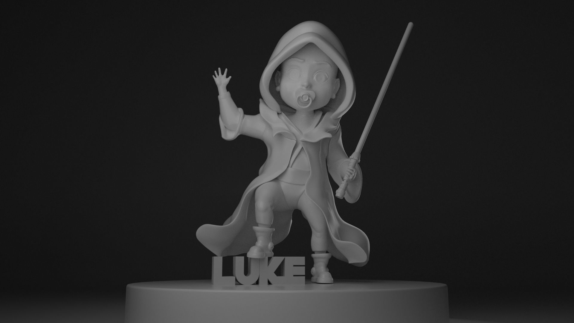 My son's name is Luke. A 3D print design for his birth announcement, and an illustration a month later Software Used: Procreate, Zbrush, Arnold